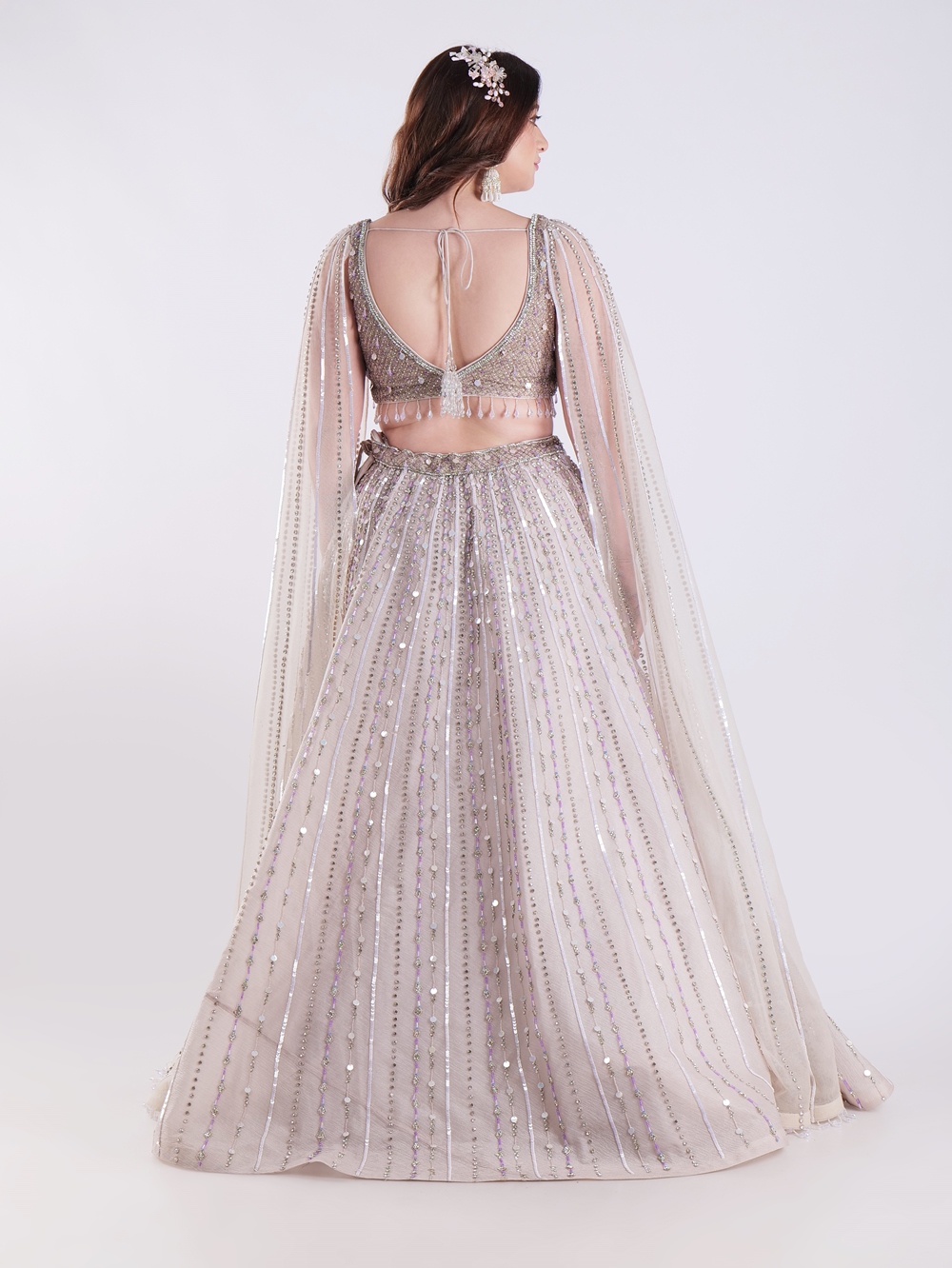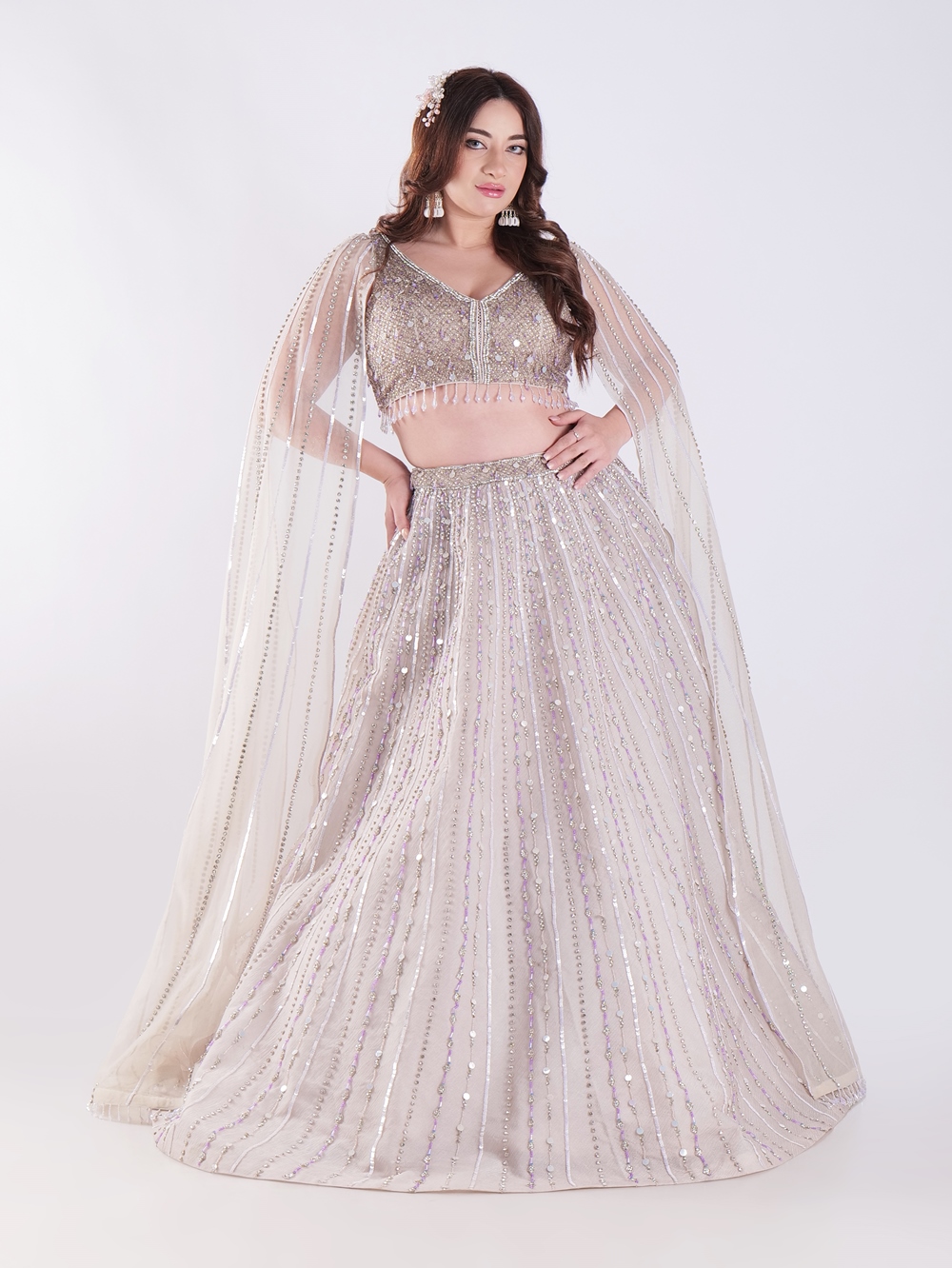 Light Colored Embrace Regal Elegance in This Champagne Sequin Embellished Lehenga Set