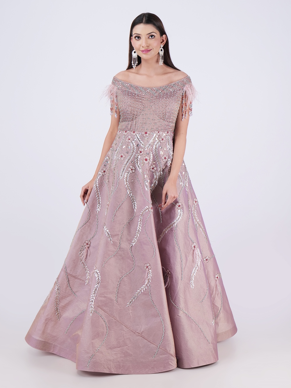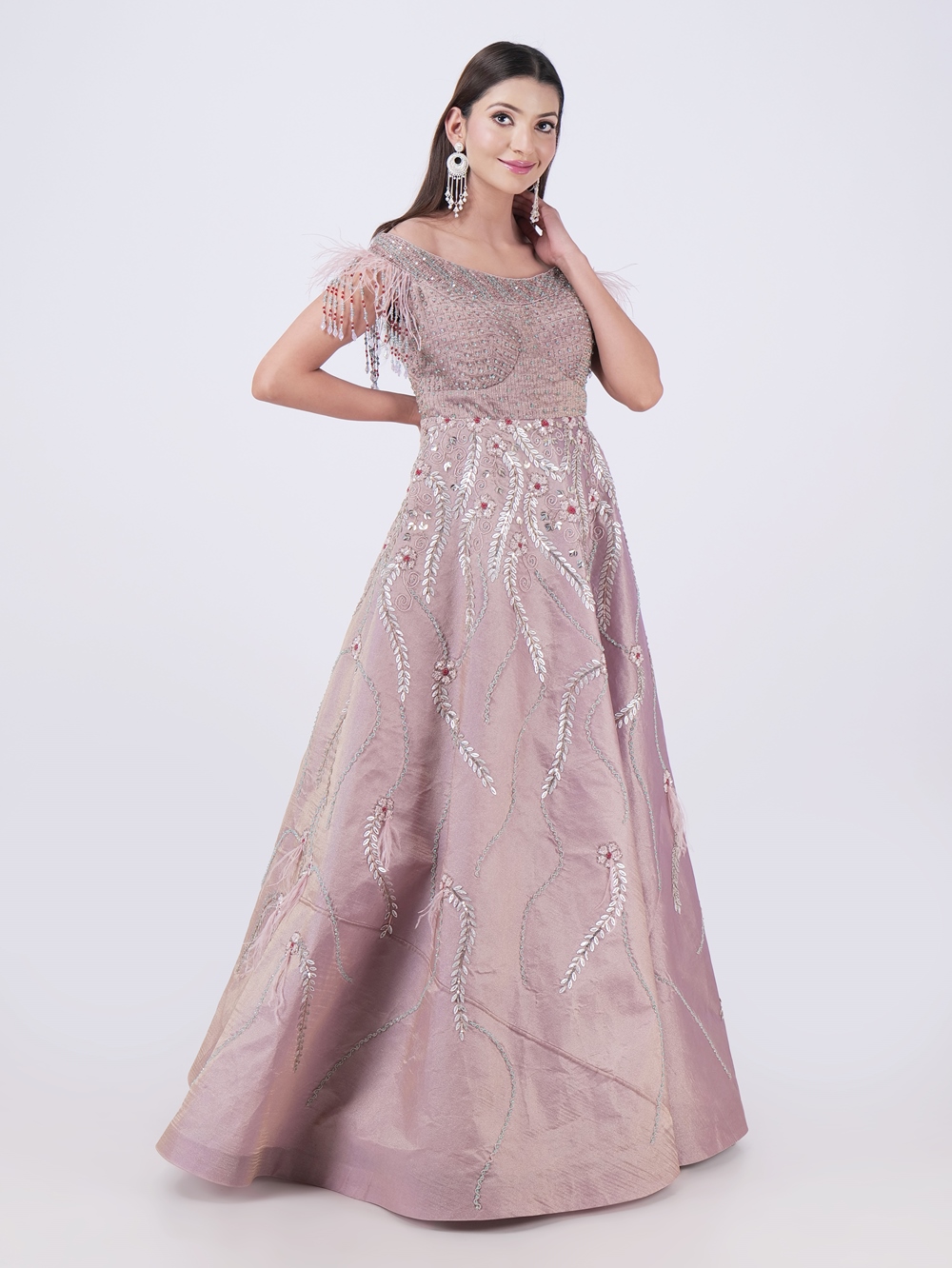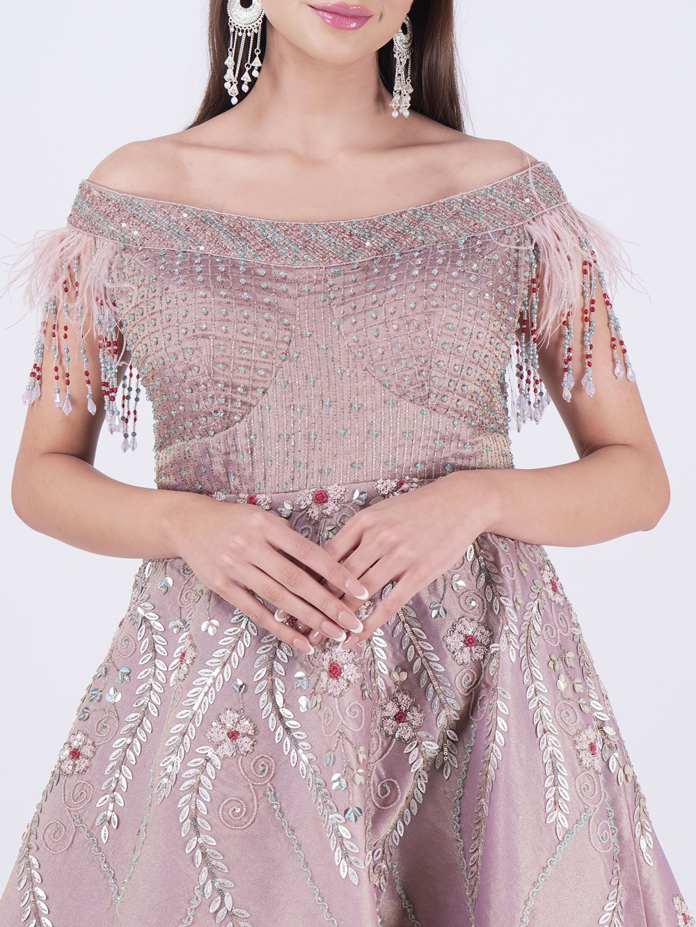 Step Into The Spotlight With This Stunning Elegant Dusty Rose Embellished Off Shoulder Gown